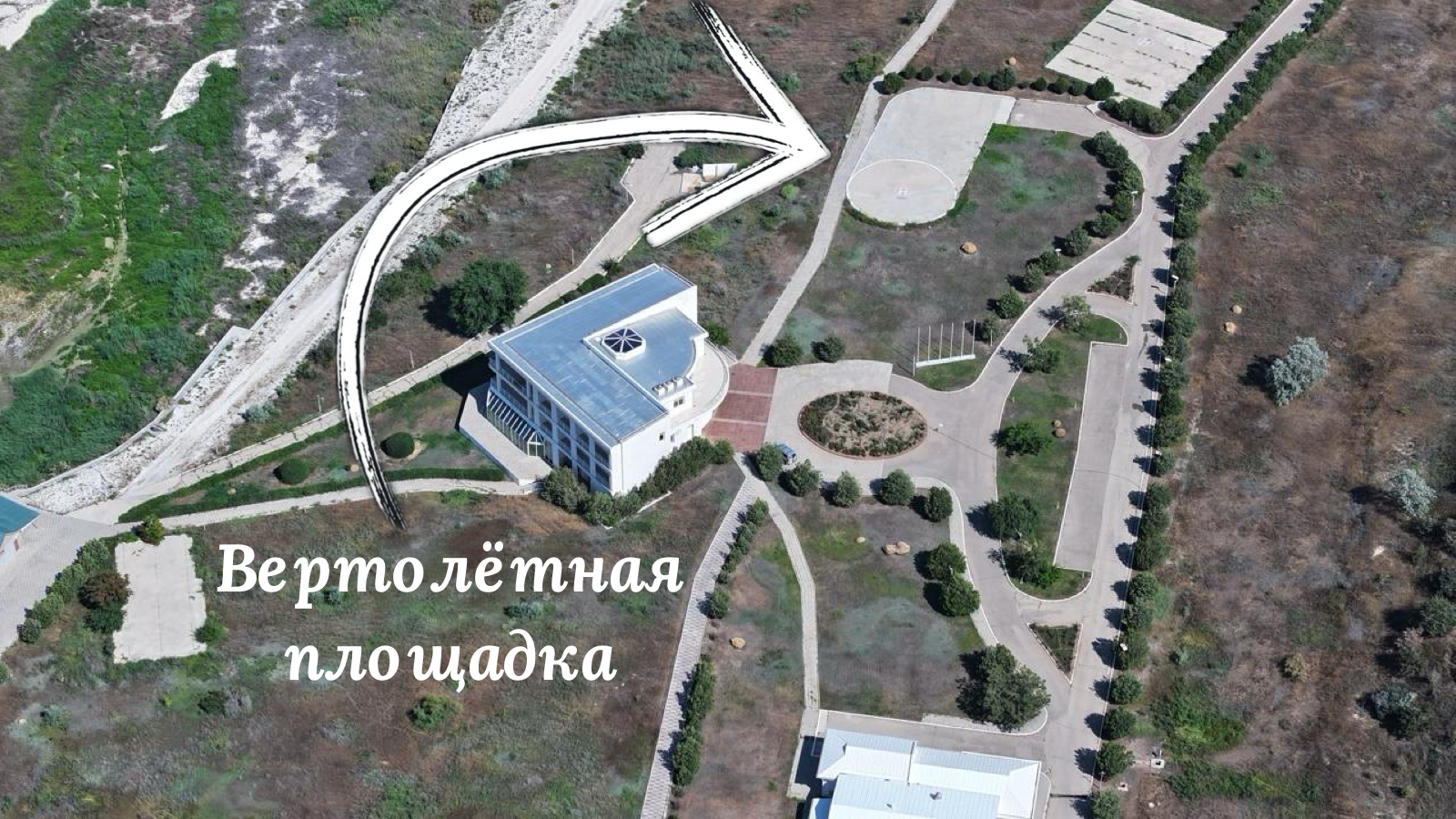 One modern three-story building appears much newer and resembles a hotel. Nearby sits a helipad — a clear indicator of the site's elite character.