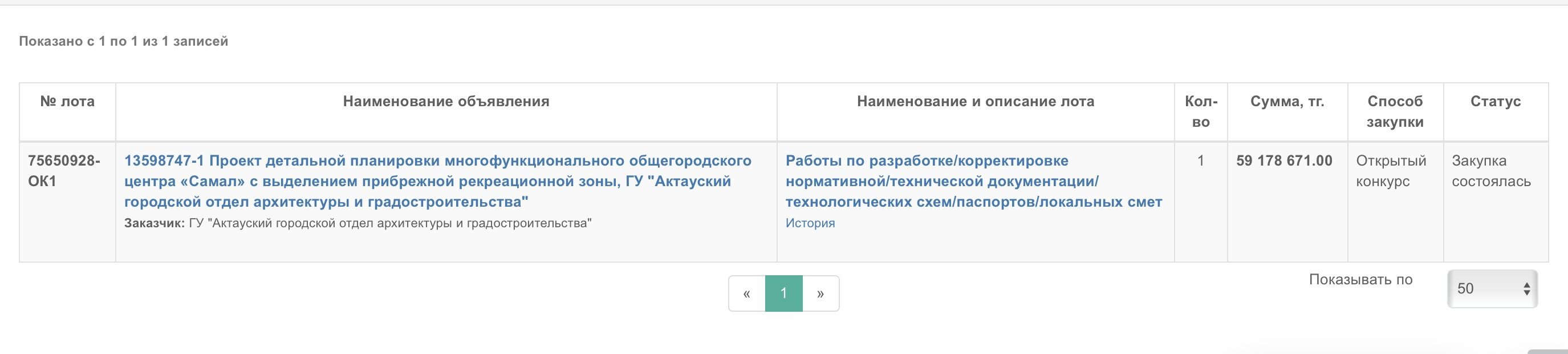 Orda.kz found the tender on the public procurement portal. The contract — worth 59 million tenge — was awarded to GRADO Design Firm, whose co-founder is Arkinzhan Mametov, a prominent architect who contributed to Almaty’s 2002 master plan.
