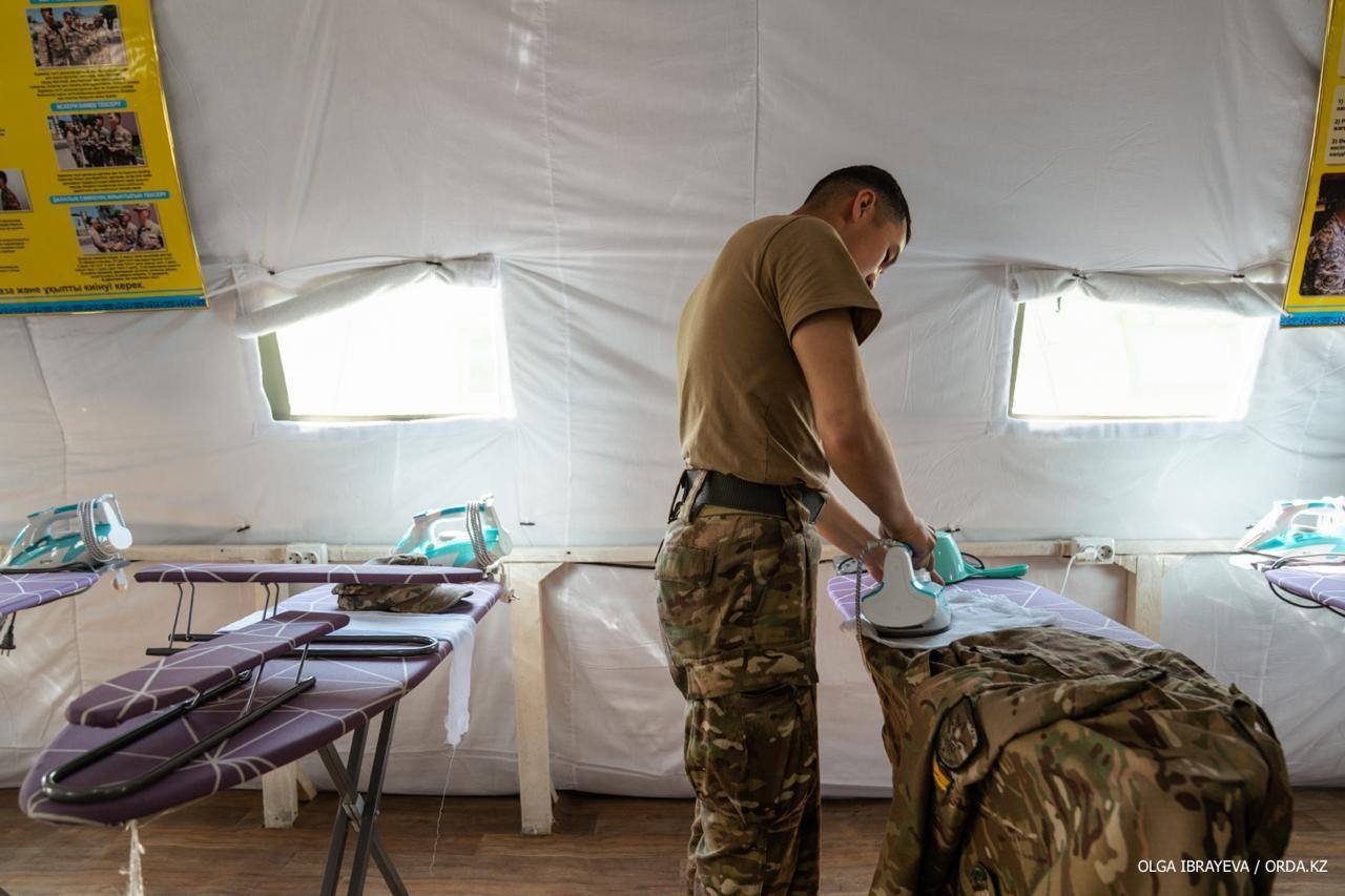 Meals are simple but high in calories, with no special treatment between ranks — elite units and conscripts alike eat the same hot soup, meat dishes, and sweet tea. As Chief of Staff Tabyldy Isaliyev puts it, “If pea soup is on the menu, everyone eats pea soup.”