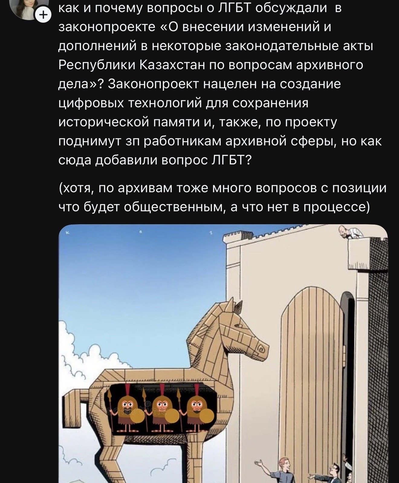 As a reminder, MPs inserted a clause on banning “LGBT propaganda” into a bill originally concerning archival regulations. The Majilis has already approved it in the final reading; it will then be reviewed by the Senate and then by the president.