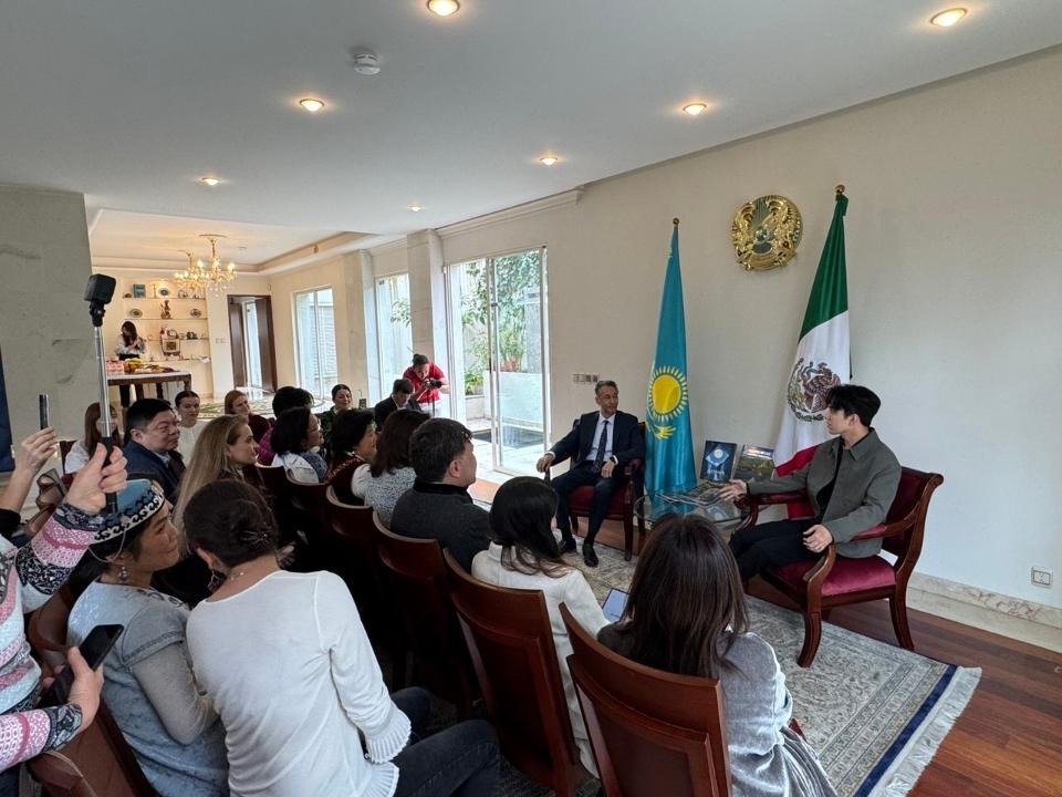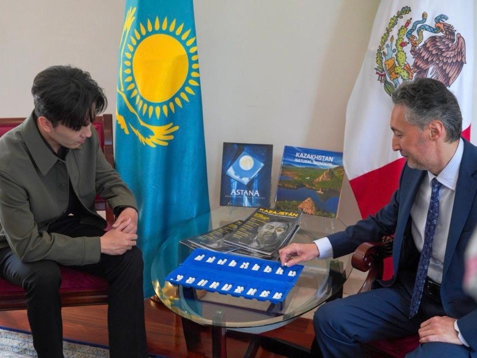 During his stay, Qudaibergen also visited the Kazakh Embassy in Mexico City, where he met with representatives of the local diaspora. According to Kazakhstan’s Ministry of Foreign Affairs, the visit included several symbolic moments: the artist played the first move in a game of togyzkumalak with Ambassador Almurat Turganbekov and performed the tusaukeser ceremony for one-year-old Khalid Yildyz, blessing the child for a prosperous future.