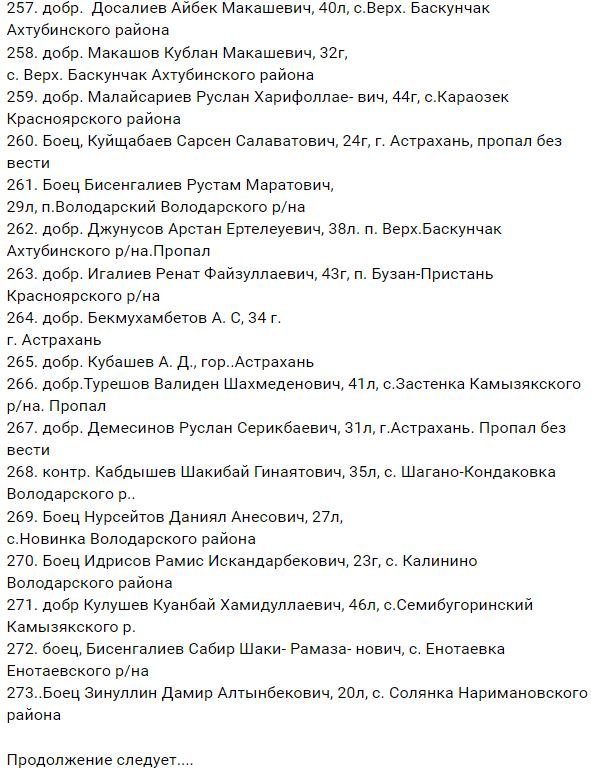 Alikhan has also sent the Orda.kz journalist updated lists for the Volgograd and Chelyabinsk regions. The first one has 99 names, the second – 52. And then there is the Saratov region, where more than 100 people died, the Samara, Orenburg, Omsk, and Kurgan regions along with the Altai and Bashkortostan republics.