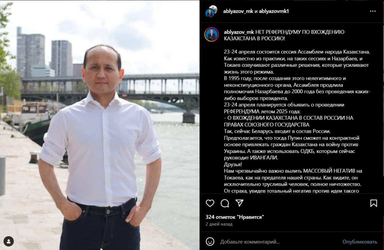Ablyazov first floated the idea of such a “referendum” in October 2024, after the vote on the nuclear power plant. At that time, he claimed a union with Russia would be the next step — though he offered no timeline.