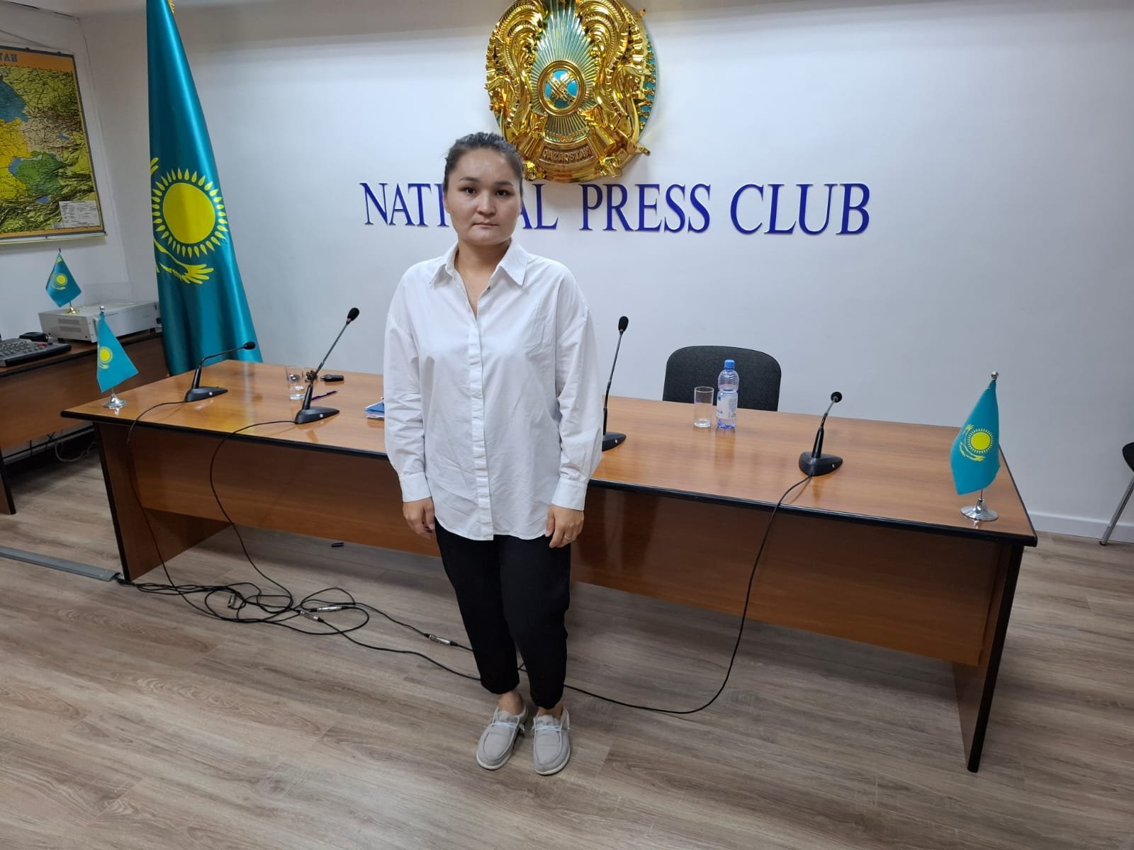 At a press conference at the National Press Club, Makhmetova’s sister, Moldir Amanzholova, described how her sibling, once a trusted employee, suddenly became the target of a criminal case.