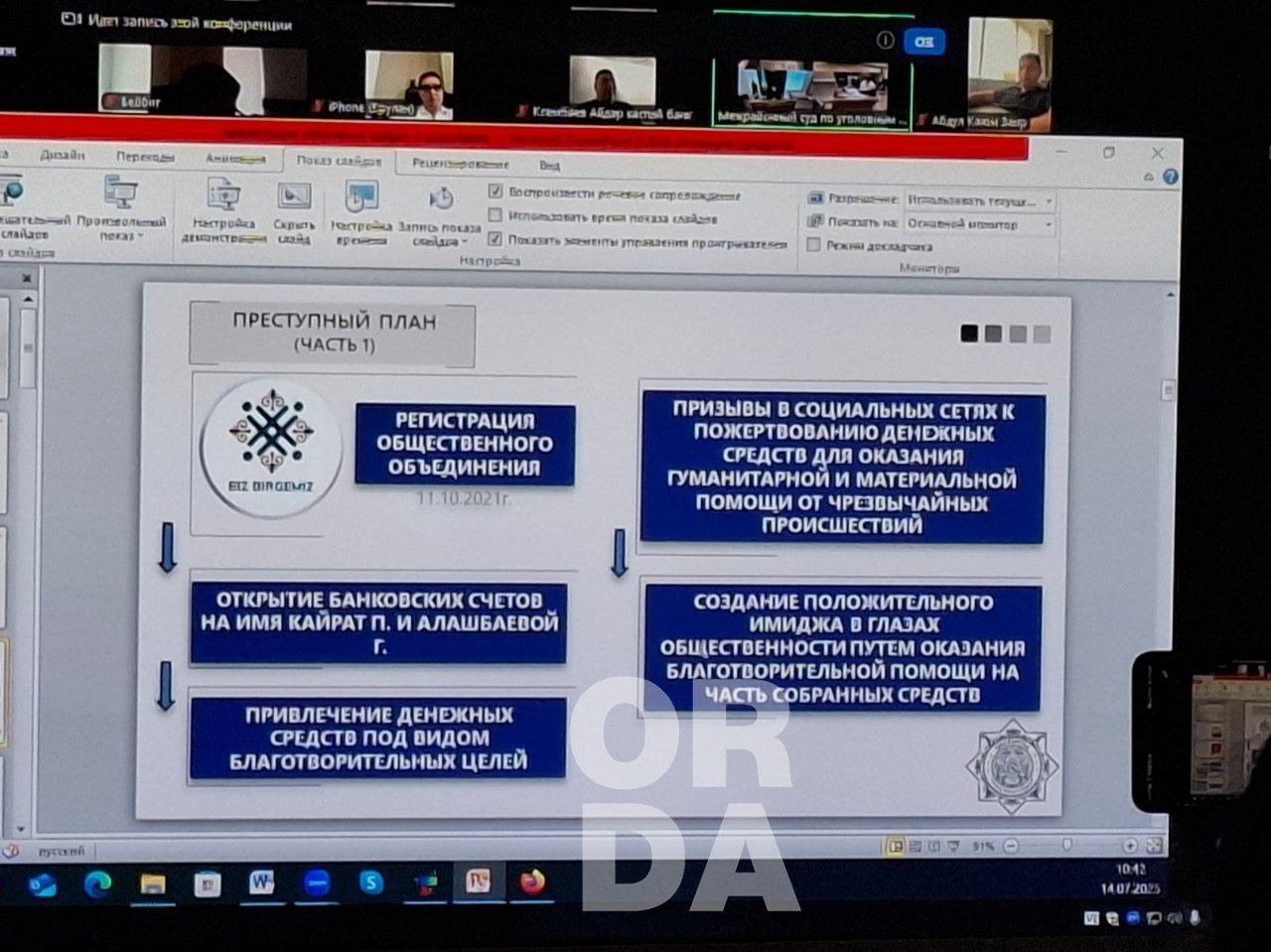 They used slides showing images from Perizat Kairat’s social media, including expensive cars and luxury hotels, alongside detailed breakdowns of her expenditures. The presentation was titled “Criminal Plan.”