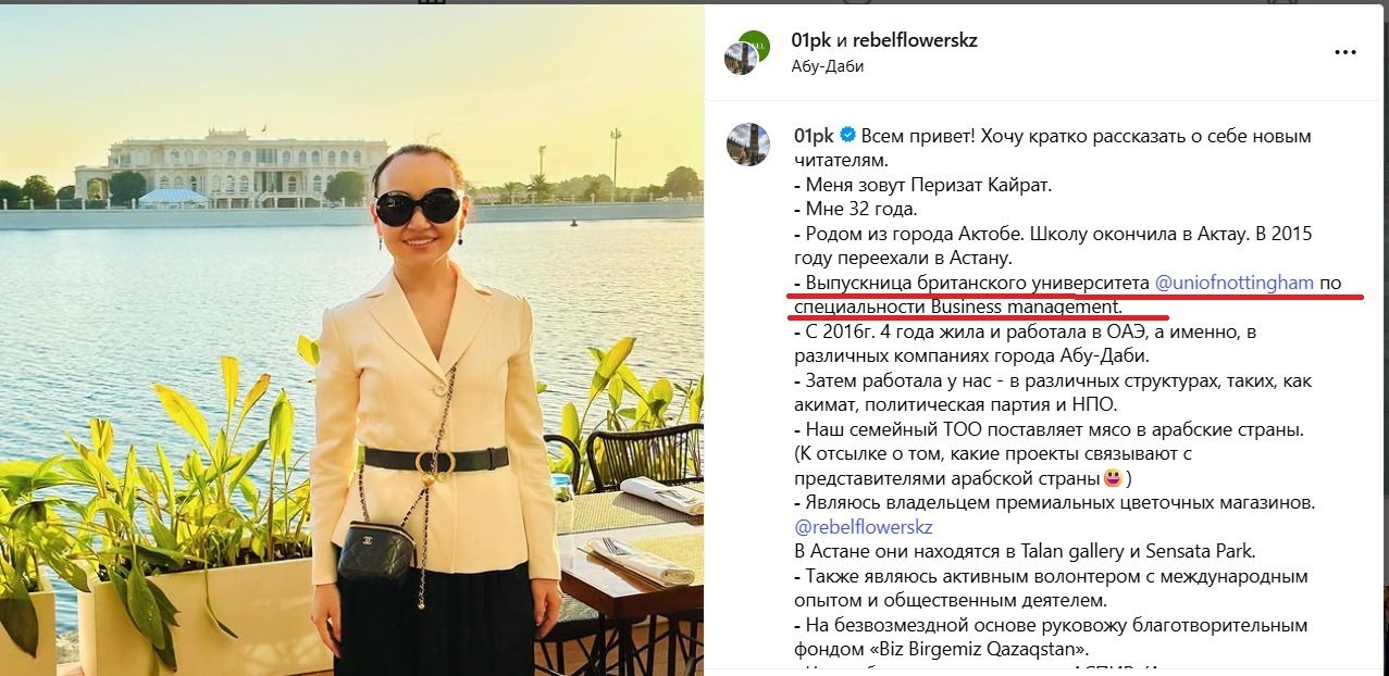 Official records show no diploma from the University of Nottingham, as claimed in investor profiles. Likewise, in an Instagram post where Kairat wrote:
