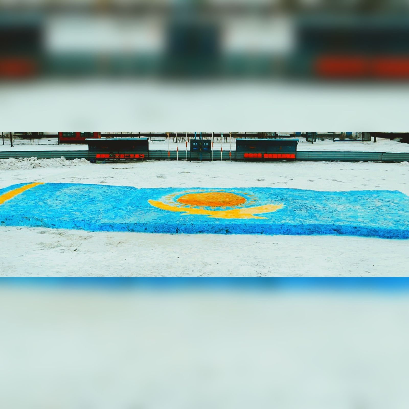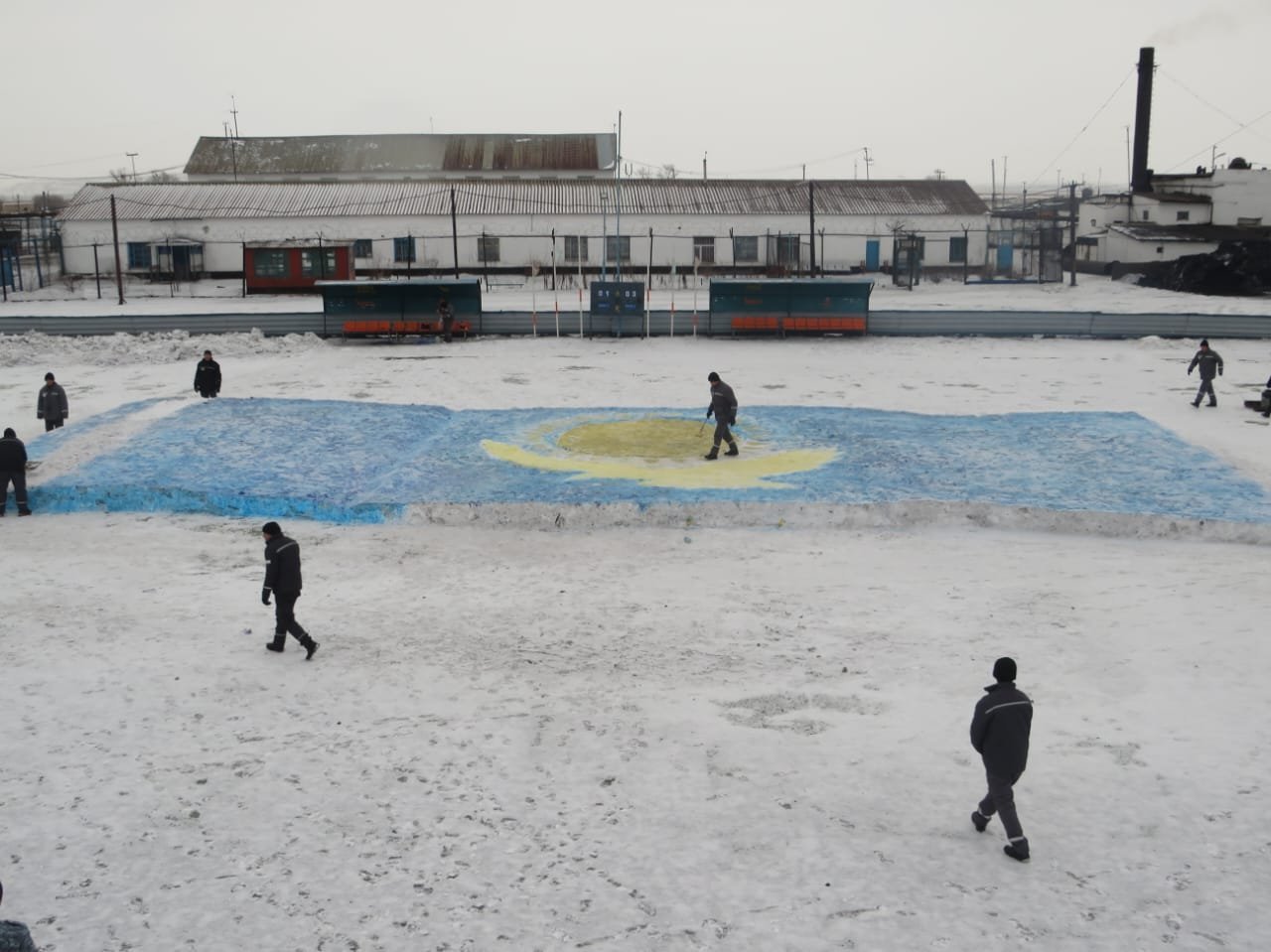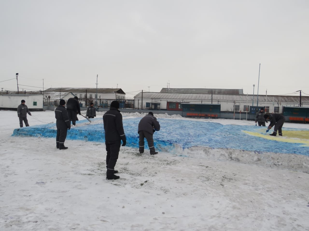 Incarcerated persons of colony No. 29 of the DUIS of the Qaraganda region have made an enormous snow flag on a football field, 18 meters long and 60 centimeters thick, reports an Orda.kz correspondent.