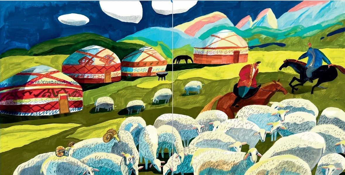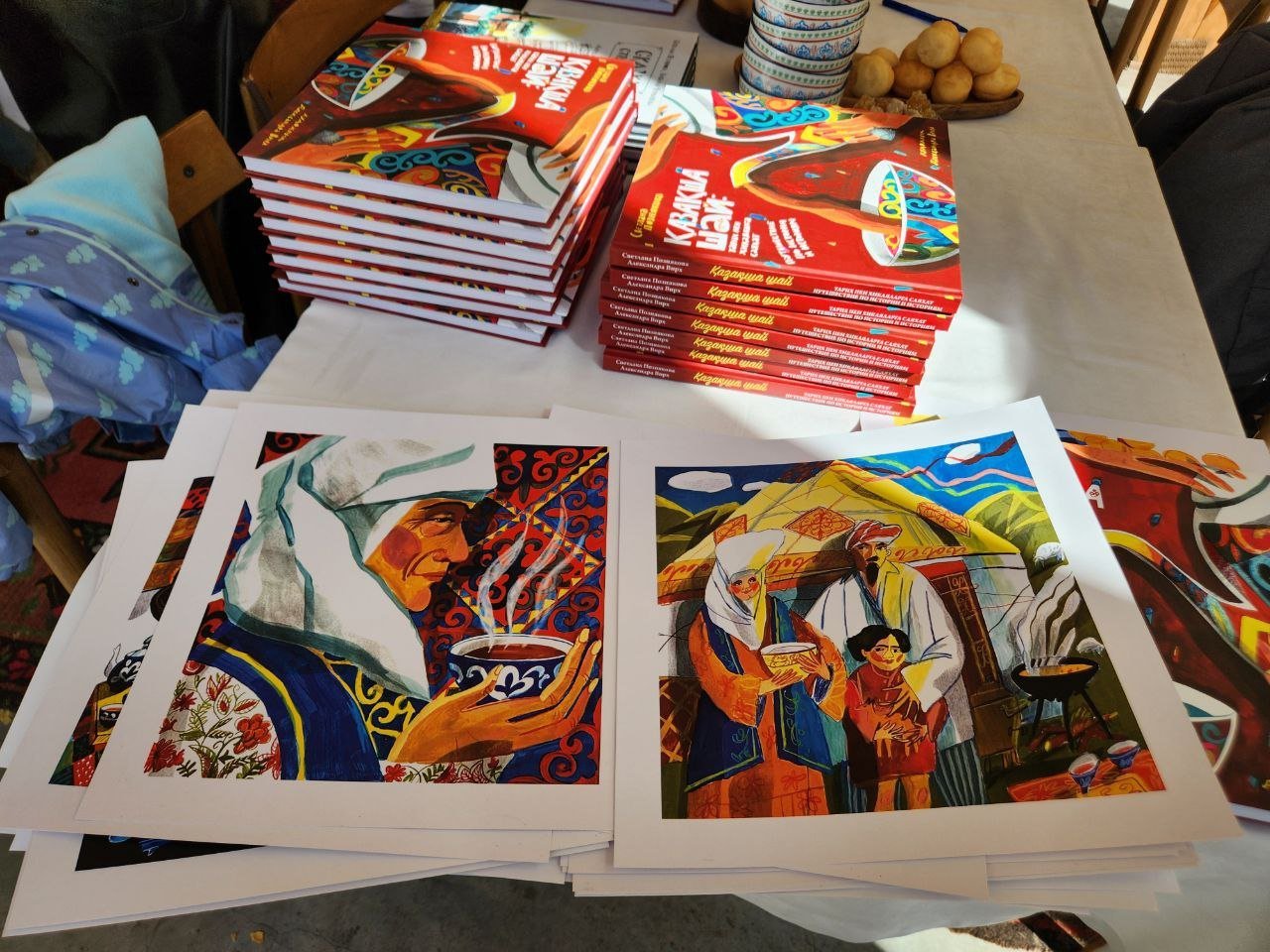 While working on the illustrations, she faced challenges sourcing visual references for Kazakh tea traditions, noting that much of what she found online lacked historical context.