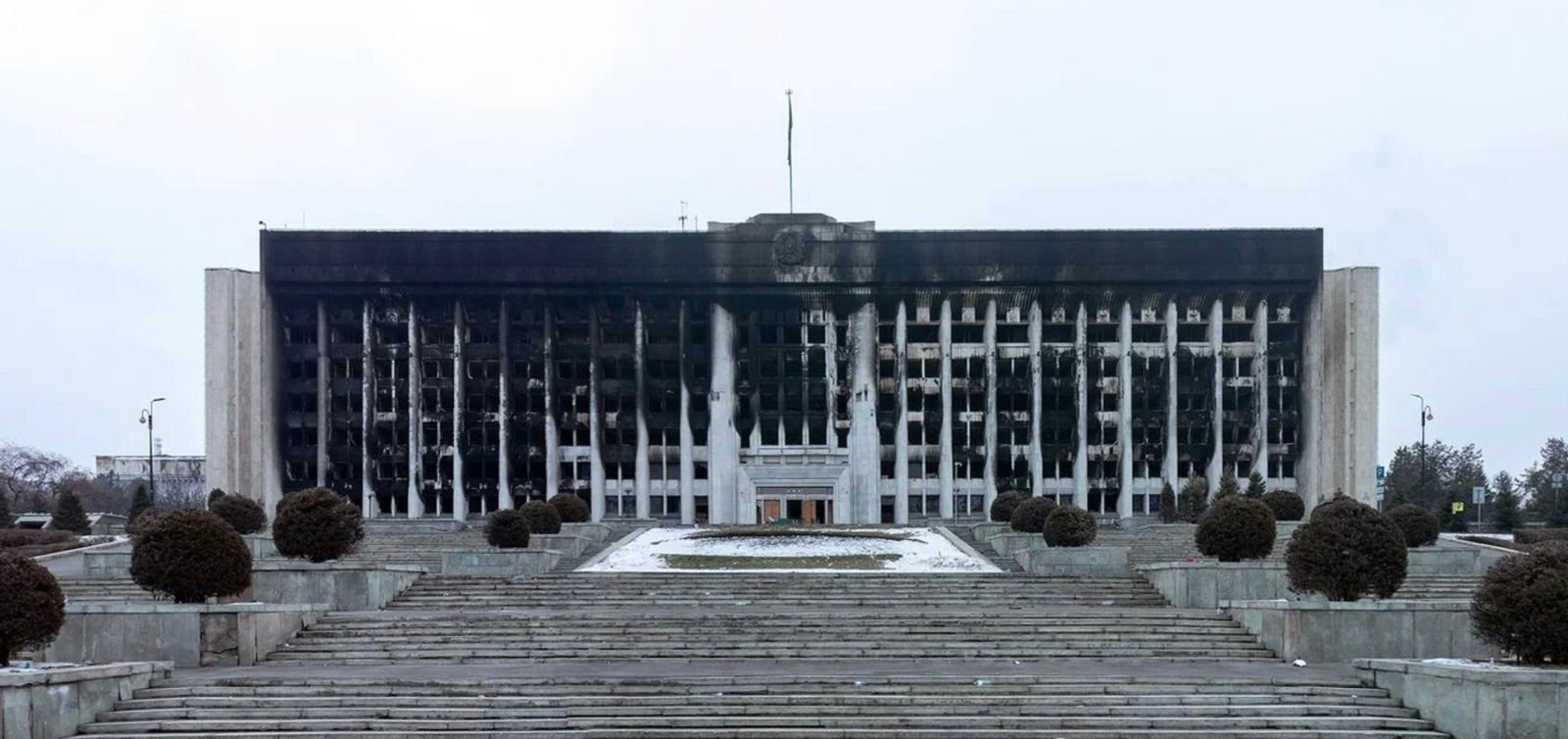 Shortly after the January events, the BC Respublika building was draped in a banner, which remained on its facade for two and a half years.