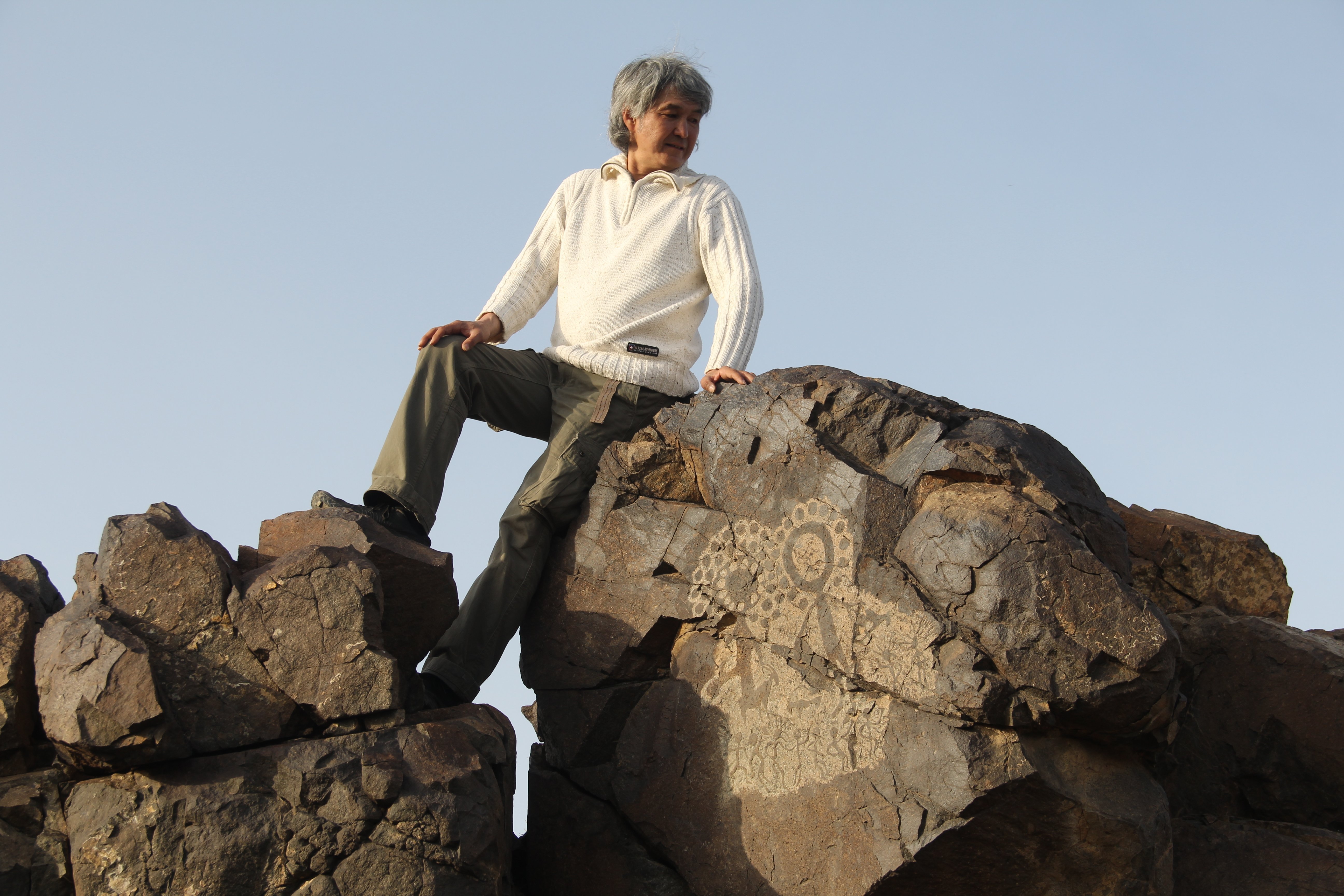 The resulting rock gallery features depictions of camels, bulls, deer, and mountain goats. For the first time, he also took on the challenge of depicting sun-headed figures — some of the most iconic and recognizable images found among Kazakhstan’s ancient petroglyphs.