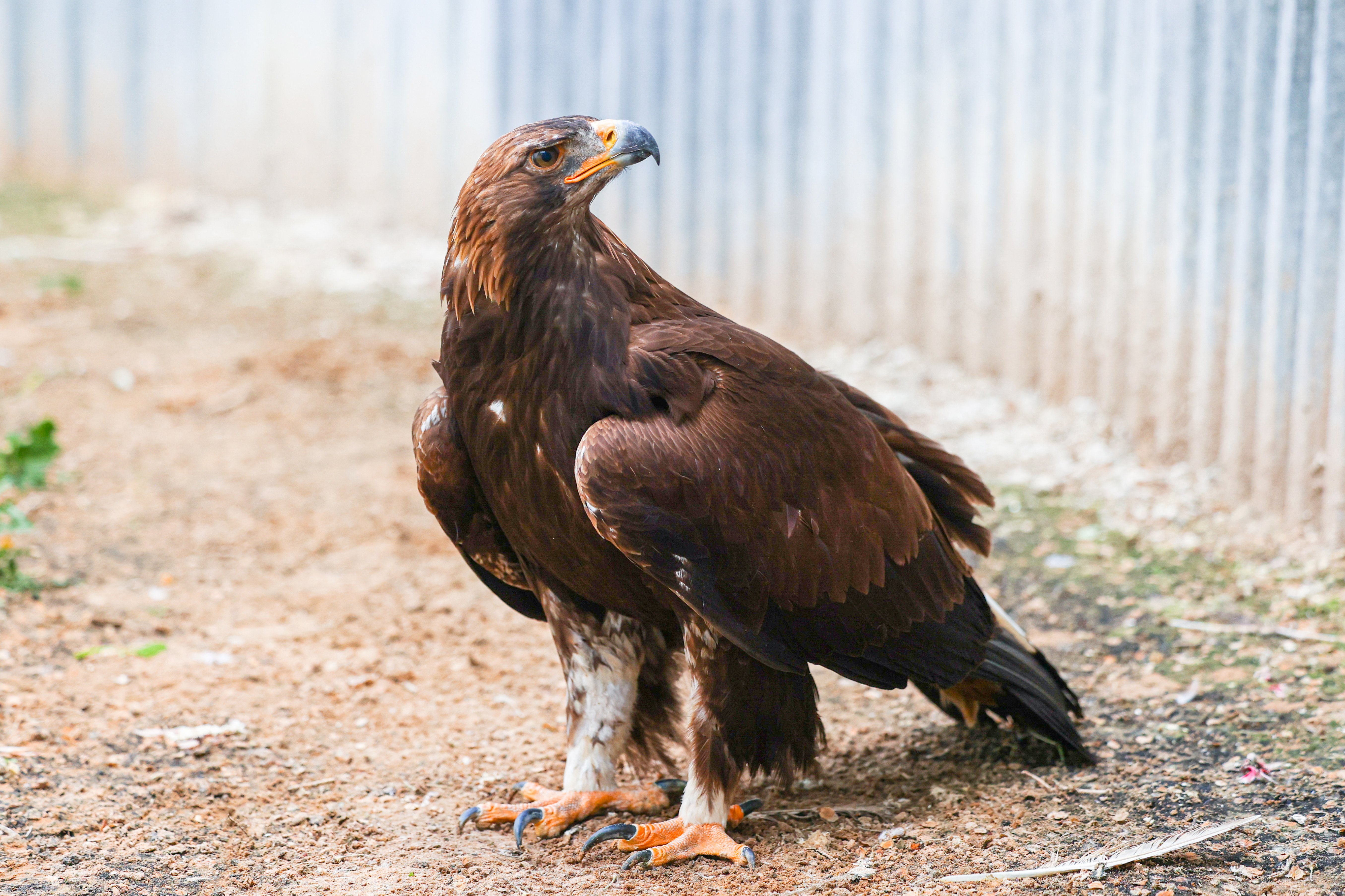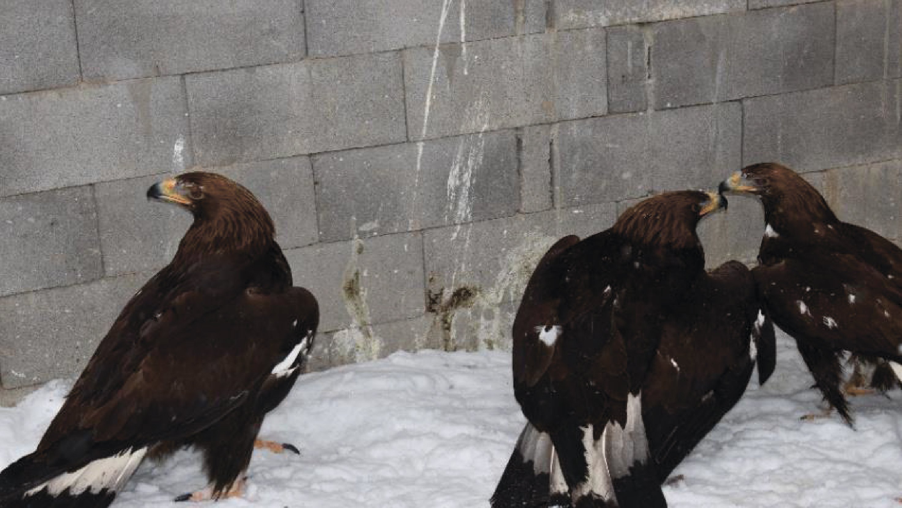 The Sunkar nursery currently houses two breeding pairs of golden eagles, capable of producing four to eight chicks each year. From birth, the birds are prepared for life in the wild — kept in enclosures away from people and other animals to prevent habituation to human activity.