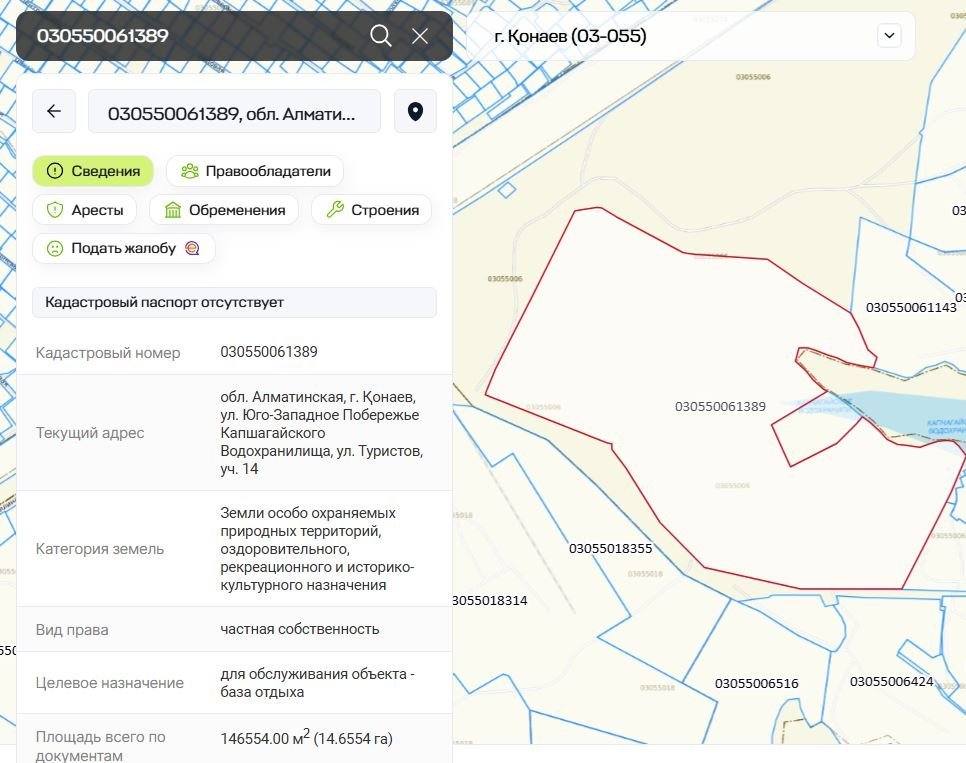 The most prominent name is Marat Abykayev, son of former National Security Committee chair and senator Nurtay Abykayev. BABI confirmed that Abykayev owns a 60-acre plot (cadastral number 03055006407) designated as a “recreation center.”
