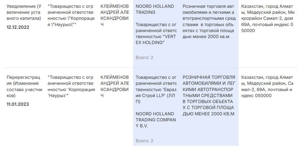 The response also pointed to Almaly Corporation LLC, whose founders once included oligarch Vladimir Zhumanbayev’s Vertex Holding, and later Noord Holland Trading Company BV, connected to Nursultan Nazarbayev and oligarch Vladimir Kim.