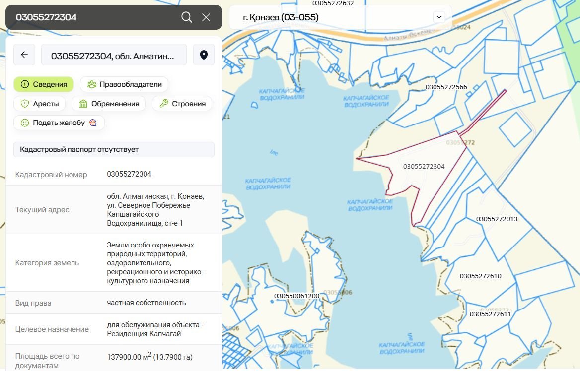 Through his company Dostar, he owns two plots on the Qapchagay shoreline with a total area of more than 15 hectares. According to BABI’s response, the prosecutor’s office is preparing a lawsuit to invalidate the ownership rights to these plots.
