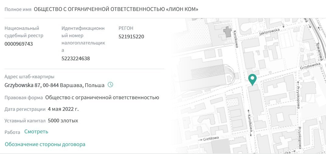 The Polish entity LION COM Spółka z ograniczoną odpowiedzialnością (LION COM Sp. z o.o.) entered the market on May 4, 2022 — almost simultaneously with the launch of a Kazakhstan-based branch.