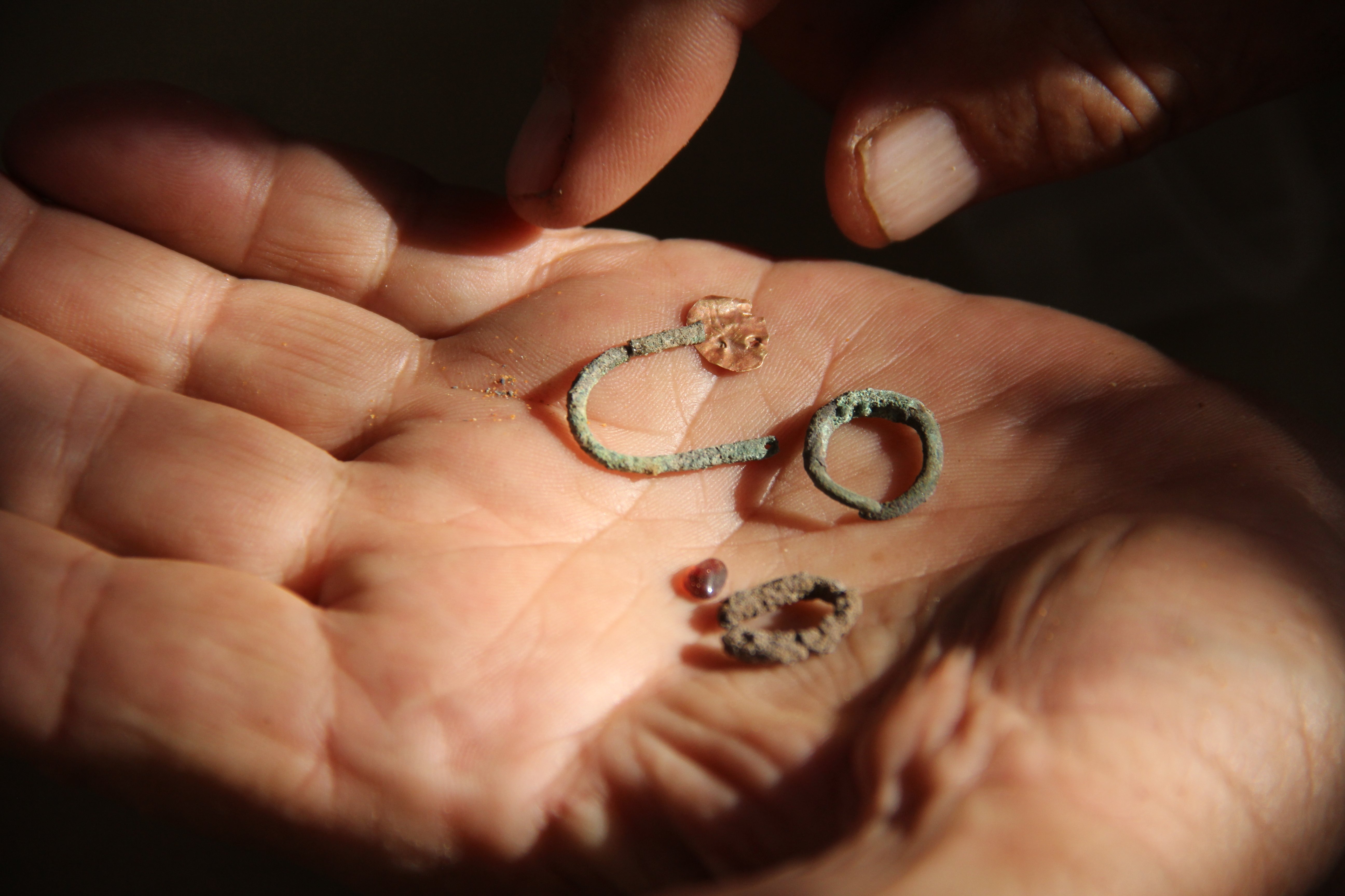 Several silver pieces were unearthed as well, including children’s earrings and inlays. There were also bronze fragments, such as pieces of a small child’s mirror.