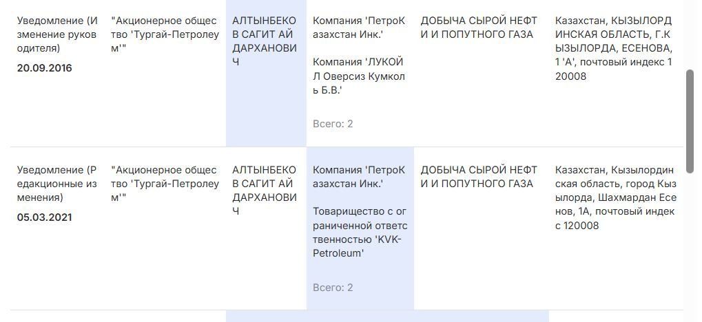 However, according to Kompra.kz, Lukoil’s subsidiaries have not been among Turgai Petroleum’s founders since 2021. The foreign ownership currently listed belongs to PetroKazakhstan Inc., registered in Calgary, Canada.