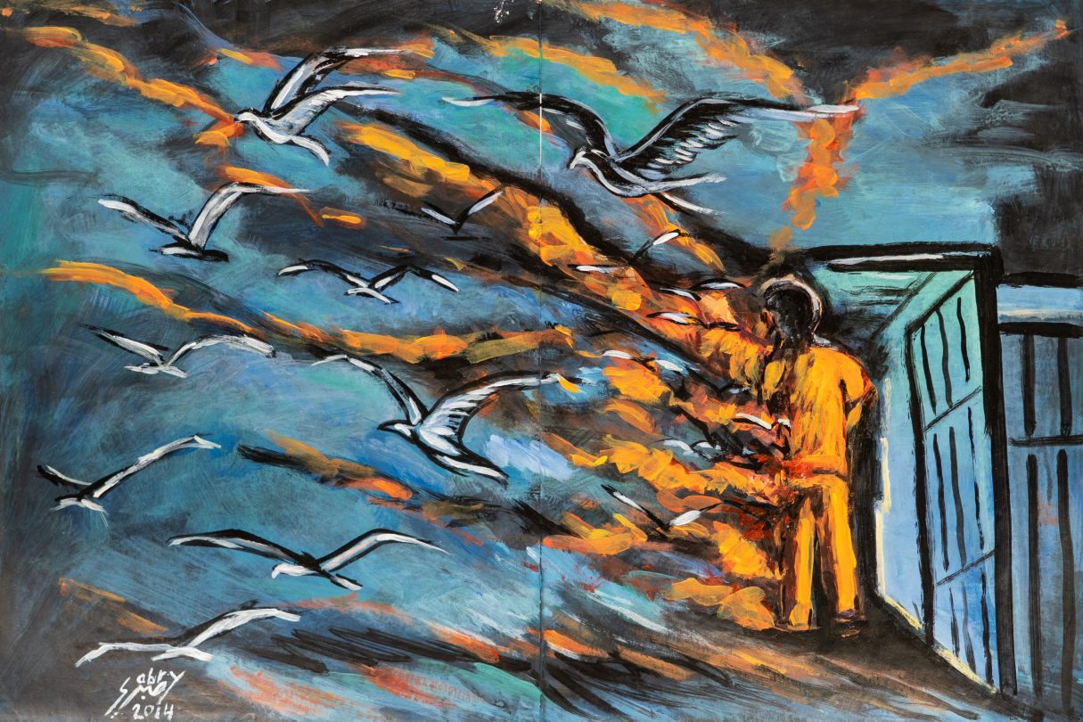 He was eventually acquitted. Sabria has been painting for more than ten years. In his work, he portrays life in Guantanamo as well as his dreams of freedom.