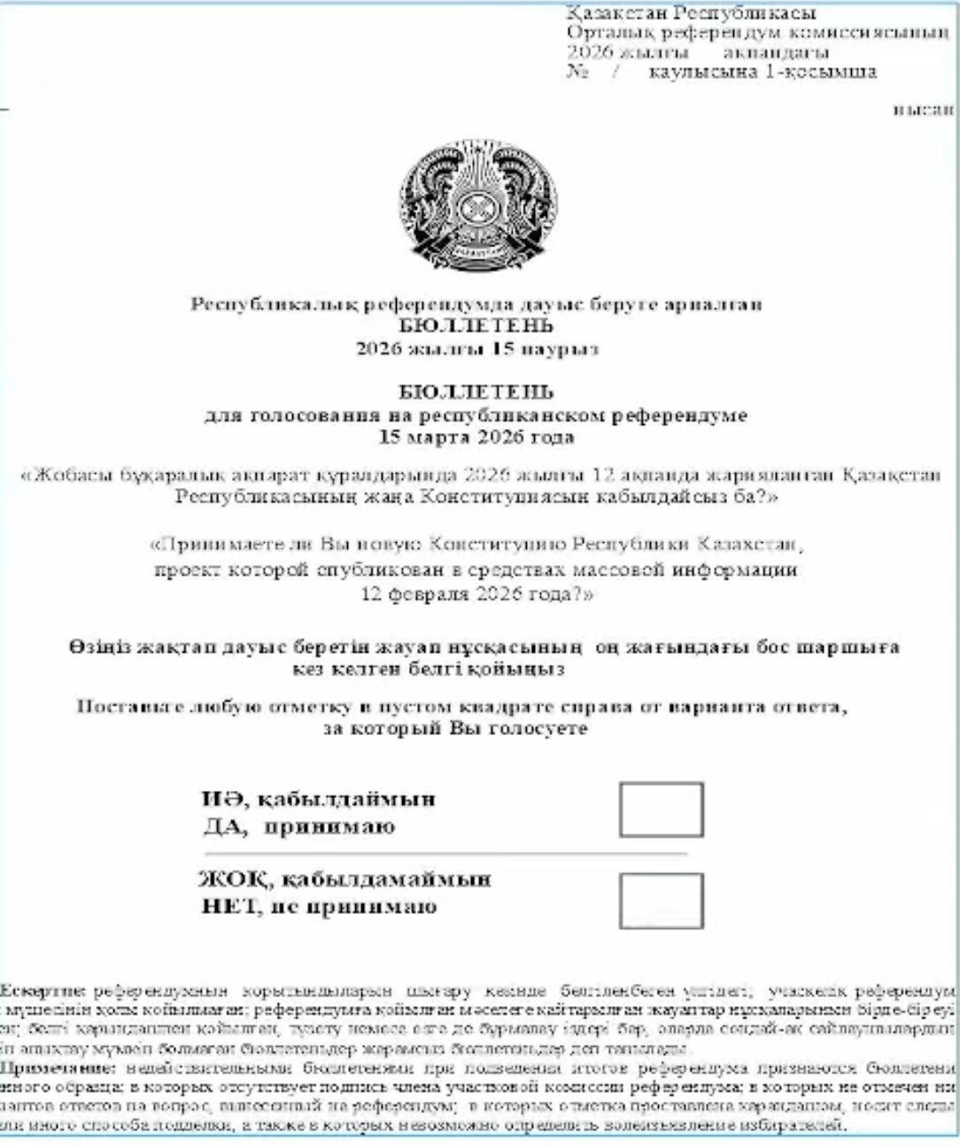 «Do you accept the new Constitution of the Republic of Kazakhstan, the draft of which was published in the media on February 12, 2026?»