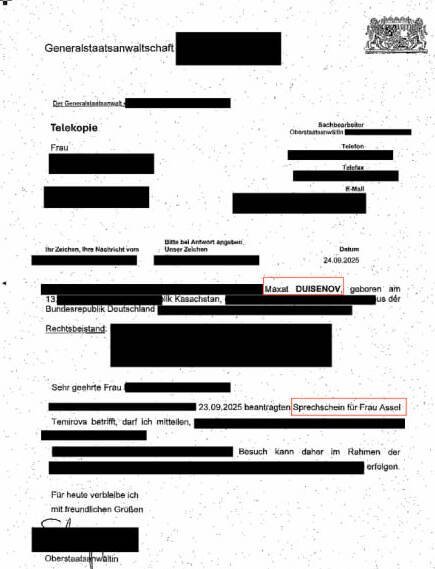 Earlier, authorities claimed Duissenov had been detained in the German city of Fürth. However, this is inaccurate. Assel Temirova, a member of Transparency International Deutschland e.V., clarified the situation to Orda.kz.