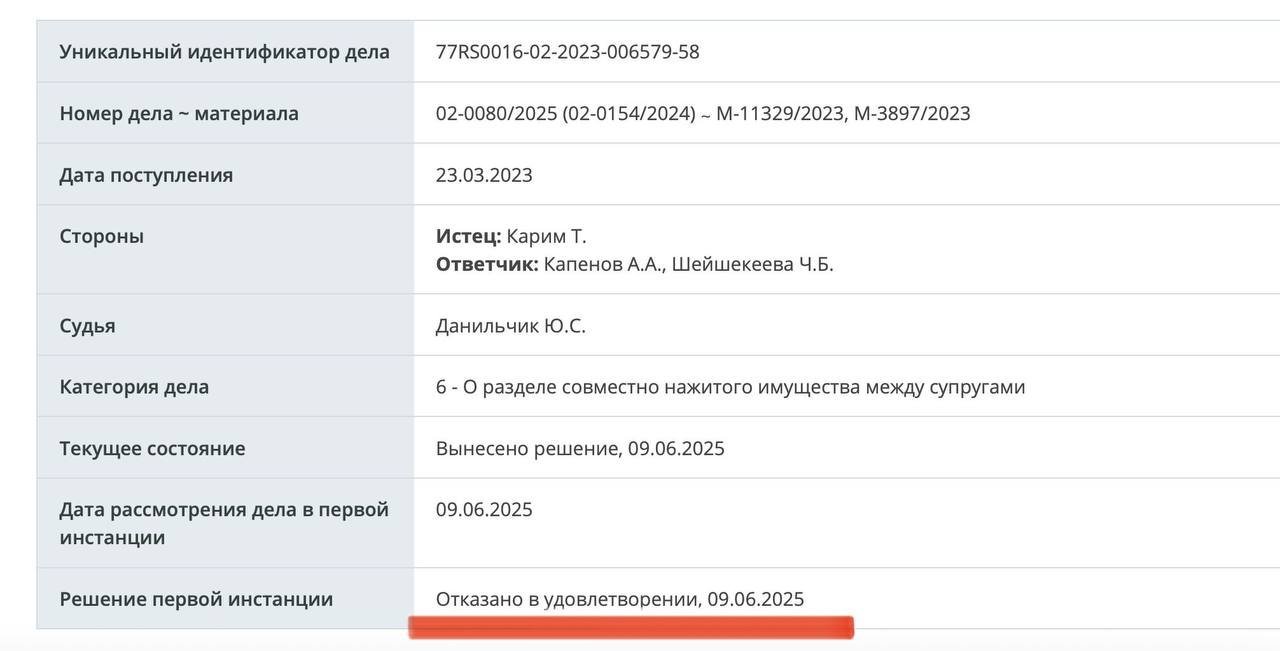 Karim had been in court for over two years with Kapenov and a third party, Ch.B. Sheyshekeeva. The defendants filed a counterclaim during the proceedings, and the claim amount was increased several times. On June 9, the Moscow City Court dismissed Karim’s case.