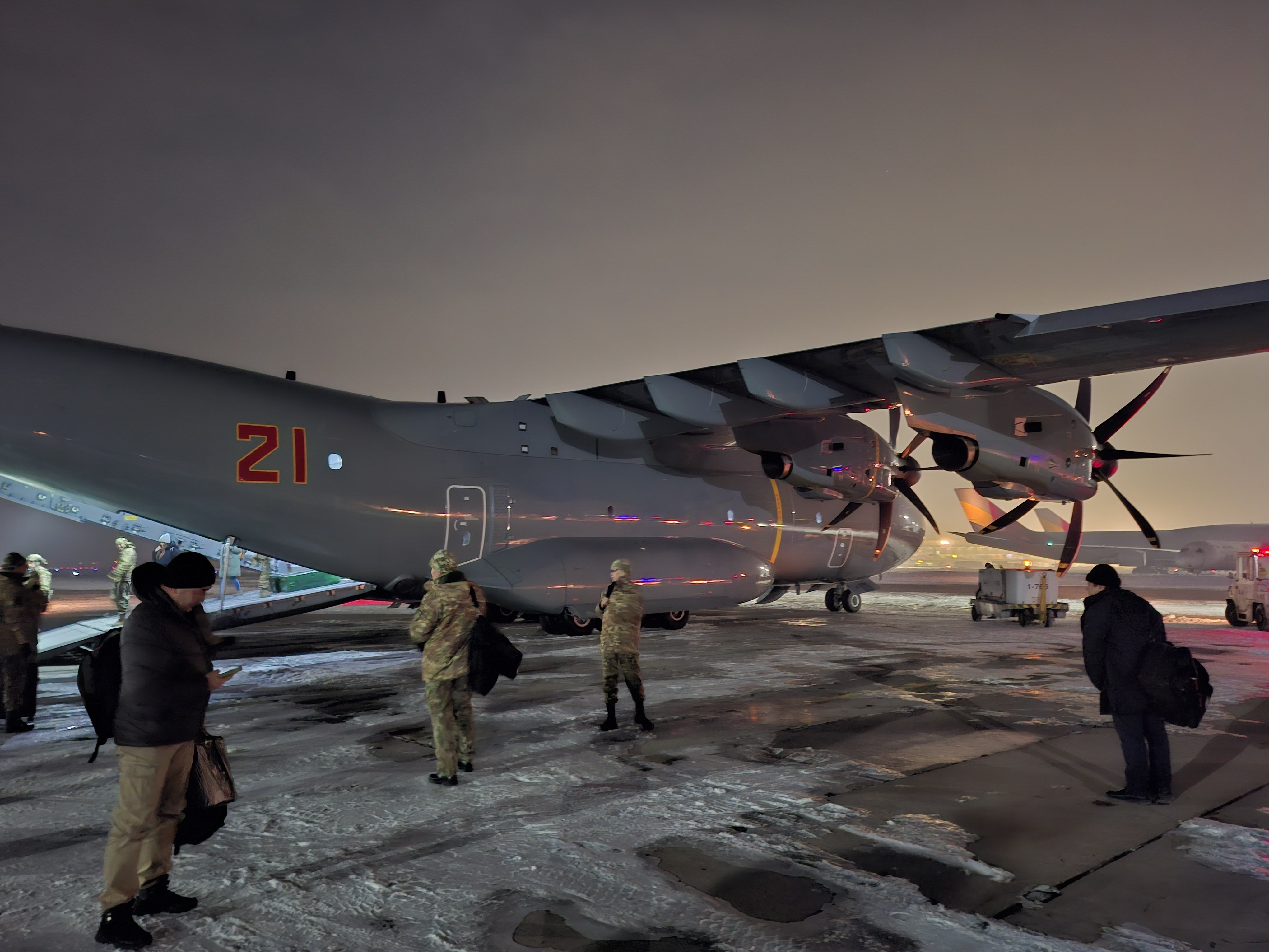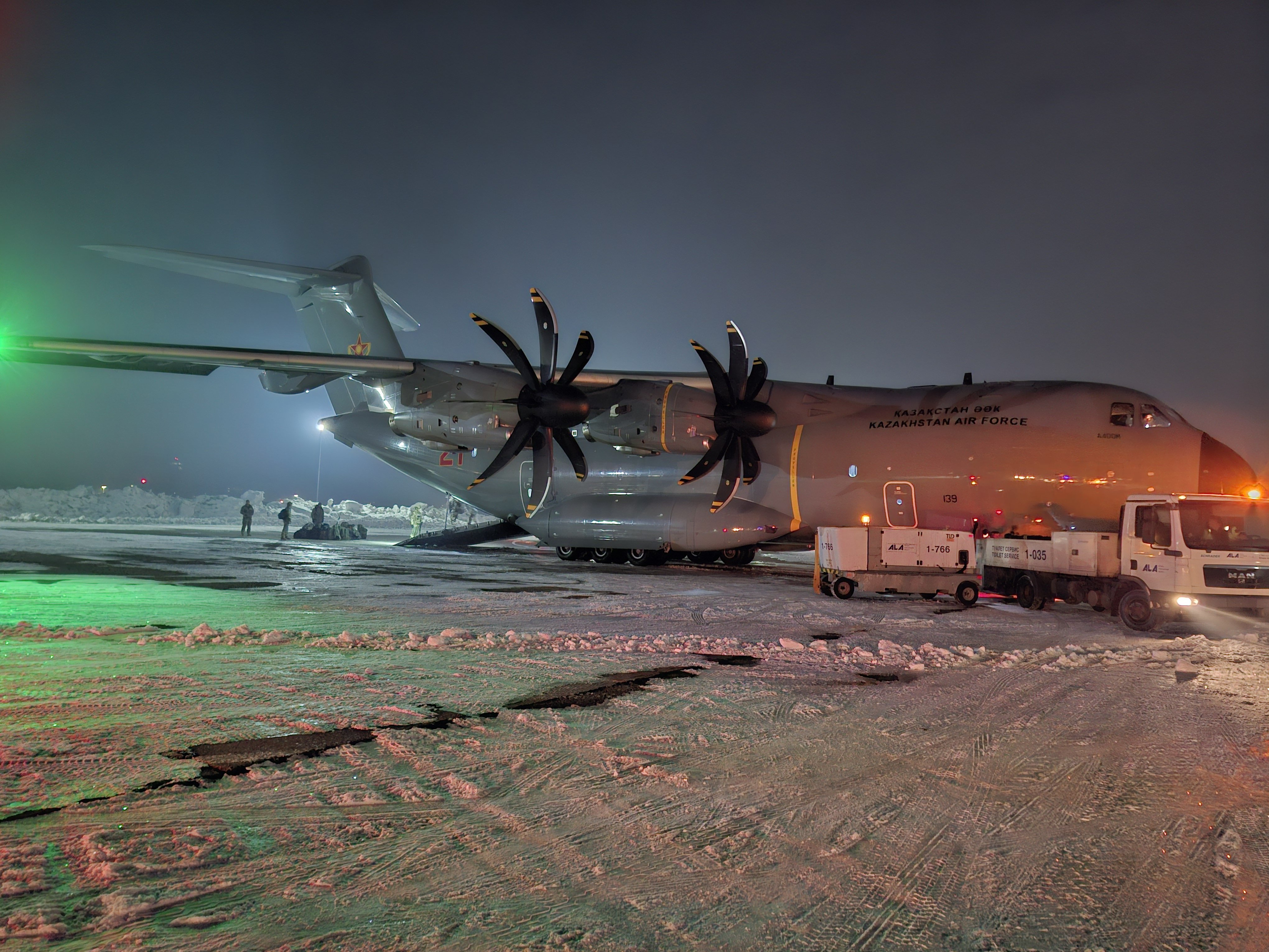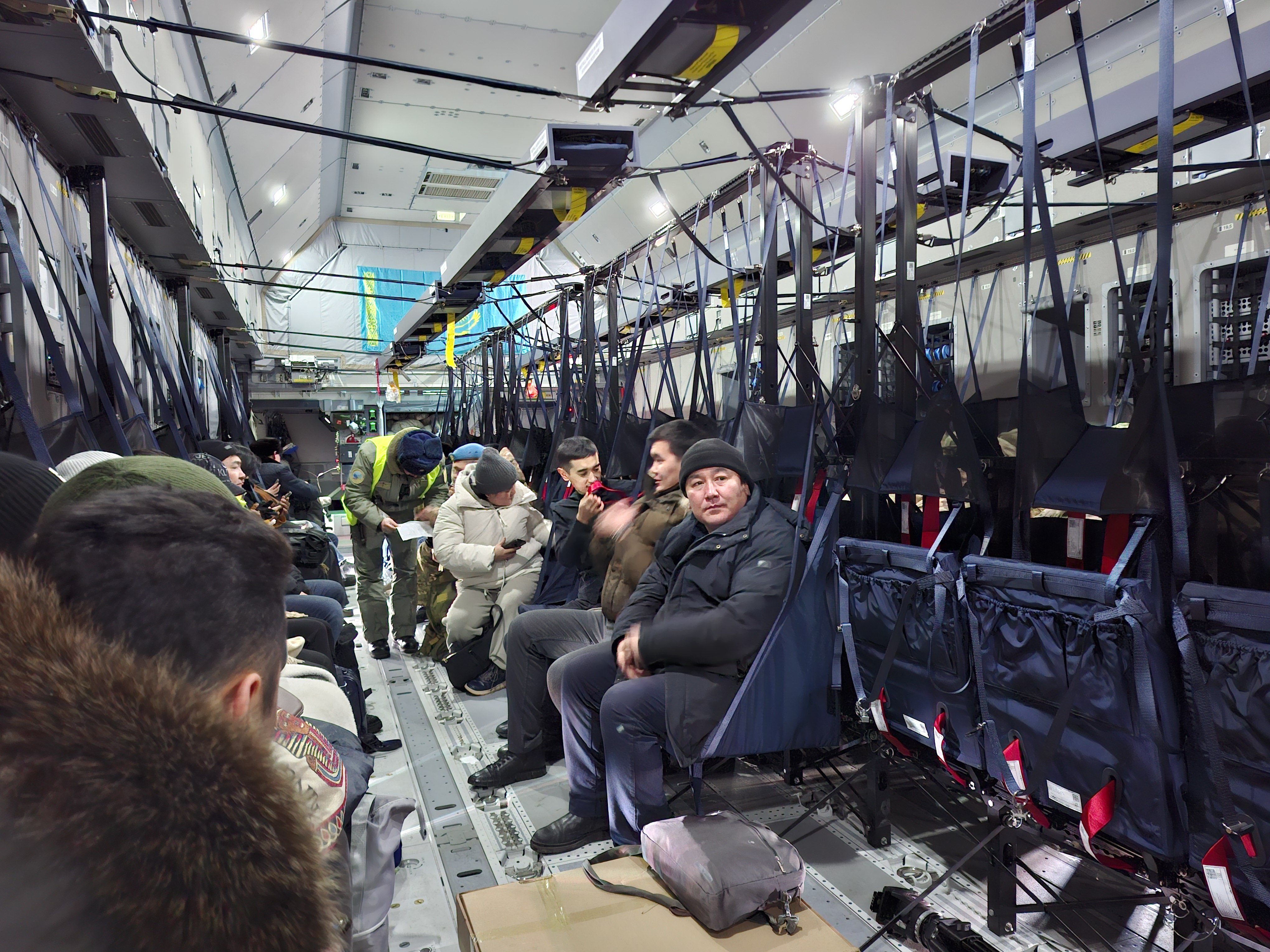 Lousy weather in Almaty prevented the military airfield from receiving the transport plane, delaying the flight until late evening.