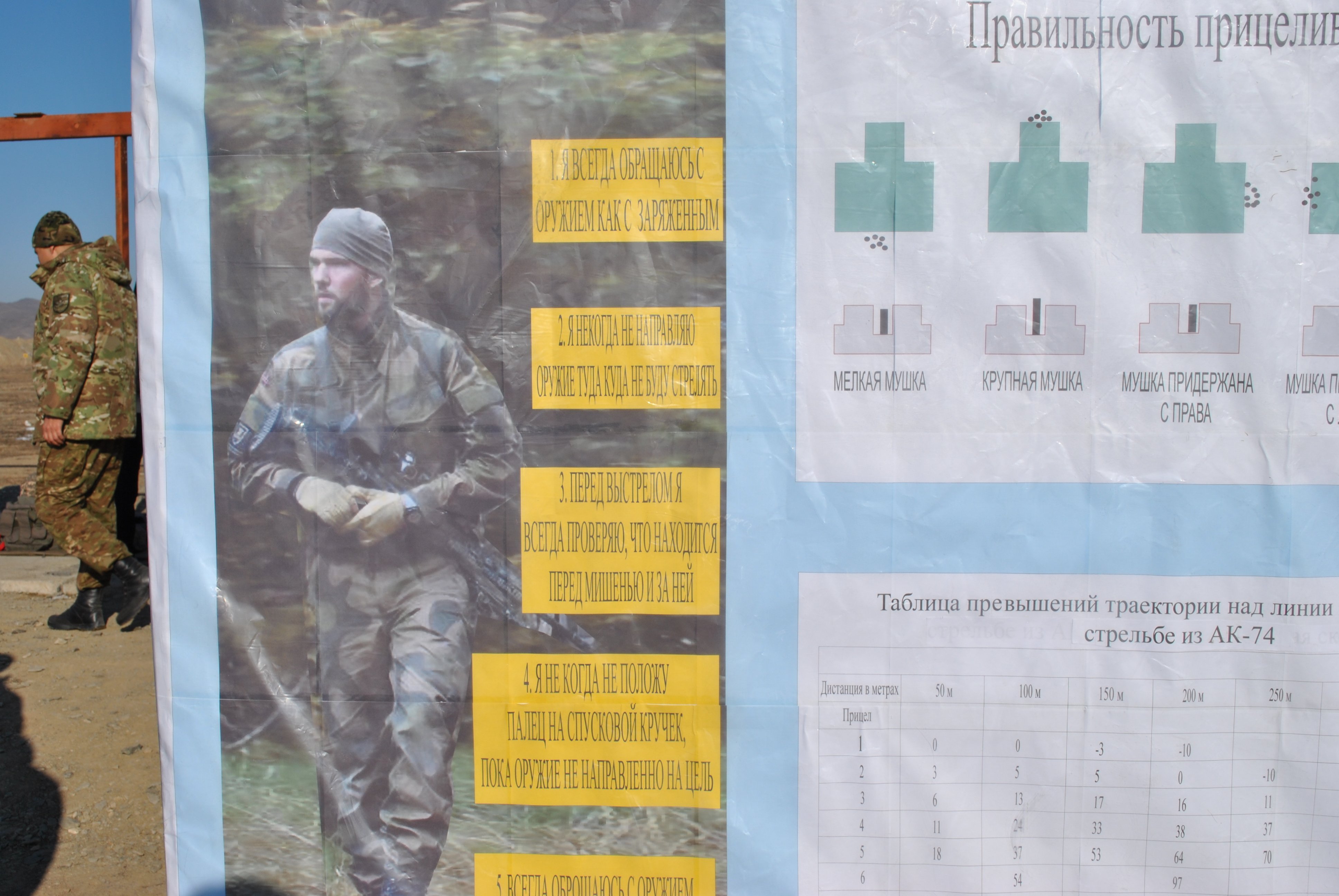 Following a detailed safety briefing, journalists were invited to test their skills with AK-74 assault rifles.
