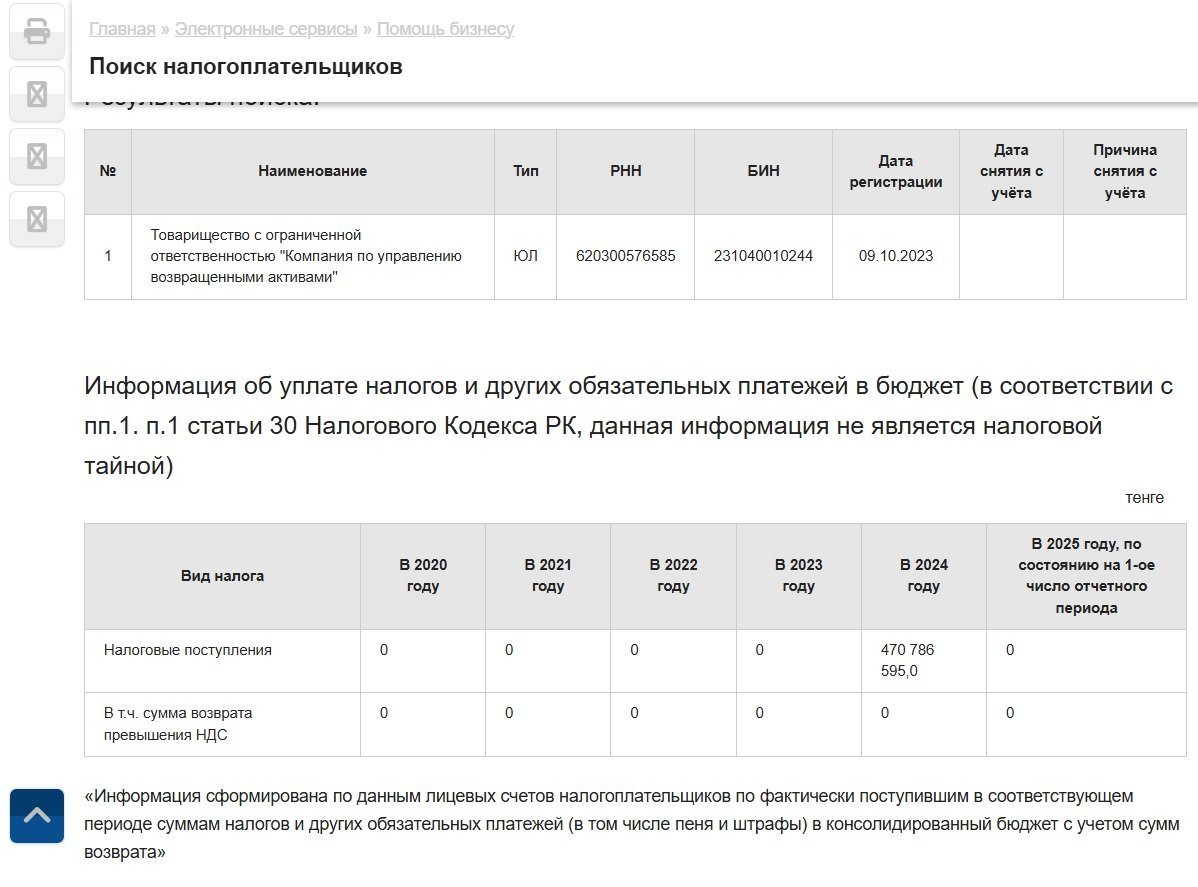 During the preparation and approval of that report (which took six months in 2024), the organization received assets worth 36 billion tenge. And in terms of revenue, it appears to have rapidly made up for lost ground: it paid 470.8 million tenge in taxes and mandatory payments in 2024.