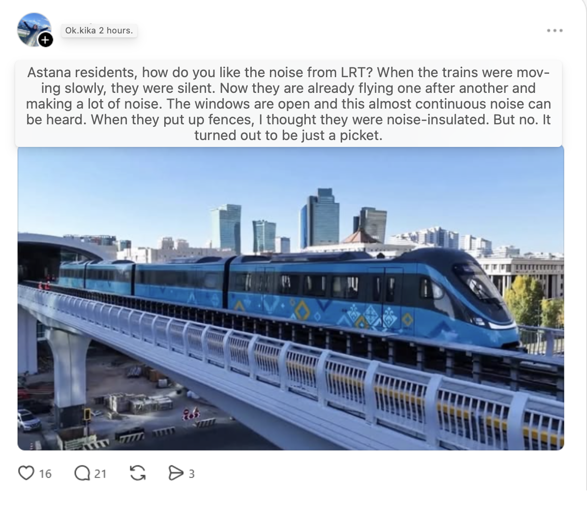 While the LRT is still operating in test mode, it is too early to draw final conclusions. However, it is already clear that after the launch, attention will have to be paid not only to the operation of the line itself, but also to the conditions around it — noise levels, safety, and the comfort of residents in nearby neighborhoods.