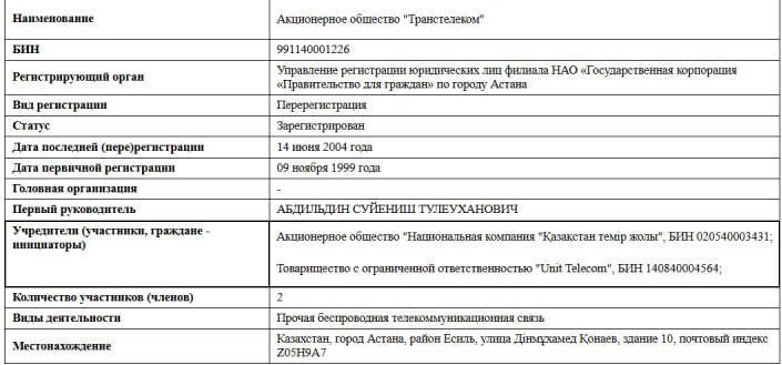- Unit Telecom LLP (75%) - controlled by Nurali Aliyev and Dmitry Pokazatelev
