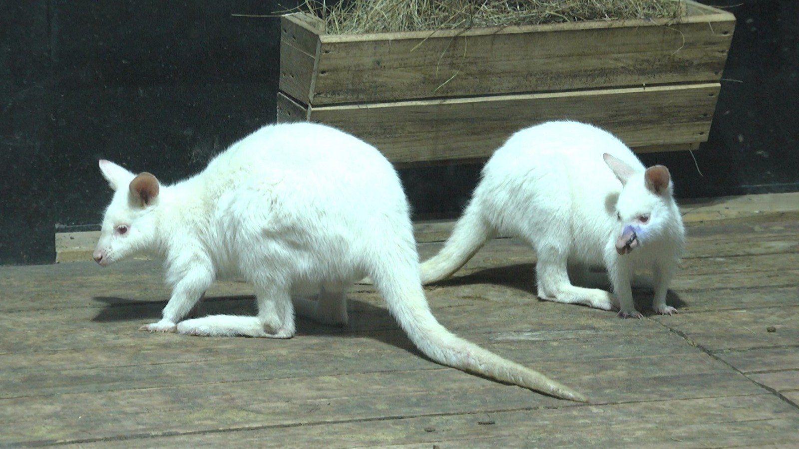 The albino pygmy wallabies from the Czech zoo are usually smaller than regular kangaroos and are a dark brown color. Although their homeland is Australia, wallabies tolerate the cold better than their larger relatives.