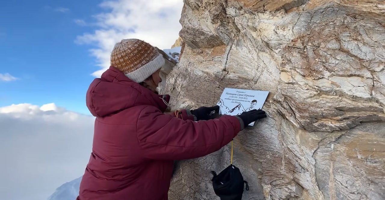 A year later, she climbed to the summit again to install a memorial plaque. This episode became the basis of Dmitry Sinitsyn’s documentary Stay with Khan-Tengri.