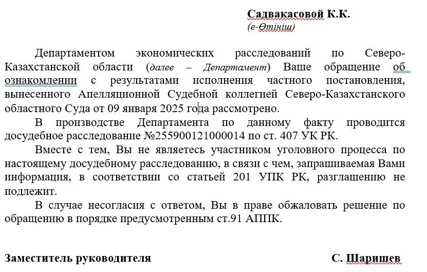 In court, the official allegedly behind this pressure was named: Maxim Pakhno, Deputy Head of the Department of Economic Investigations for the North Kazakhstan Region. The court issued a private ruling, and the Financial Monitoring Agency (FMA) launched an investigation.