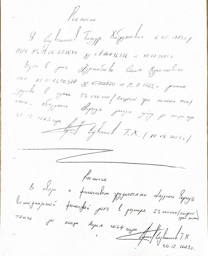 Sadvakassov, a close friend of Kurmanbayev, had borrowed money from him under a promissory note.