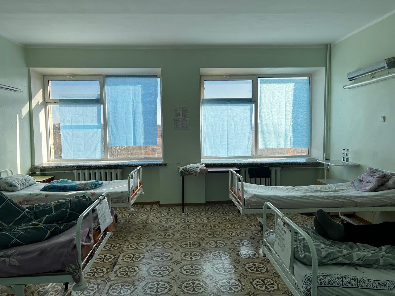 We’re not showing the actual operating room, but the space where patients stay before and after surgery. For almost two years now, doctors at the Stepnogorsk hospital have been performing operations in such conditions.