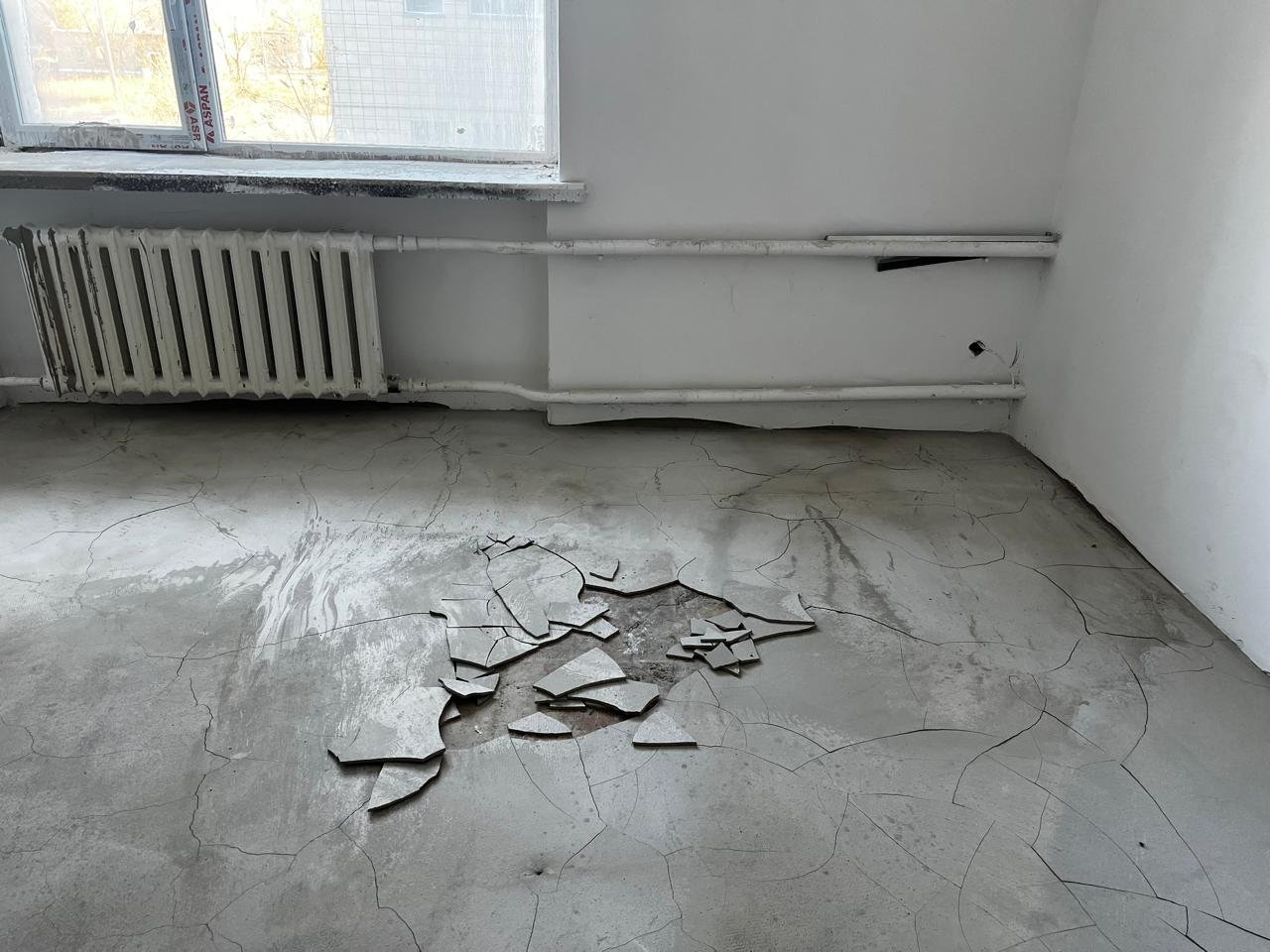 The floors are another issue. According to the hospital’s director, the builders poured the screed over uneven cement — apparently assuming the linoleum would cover everything up.