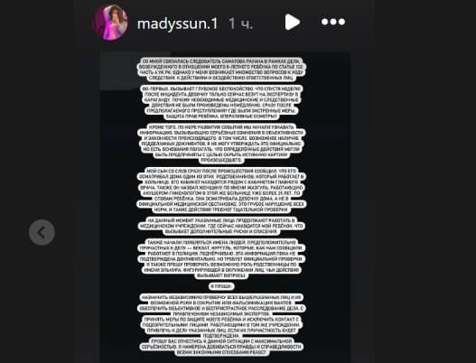 She contacted me as part of the criminal case initiated against my child on the fact of an alleged offense under Part 4 of Article 102 of the Criminal Code of Kazakhstan (“Sexual Assault” — Ed.). I have many questions for the investigation, the mother wrote on social media.