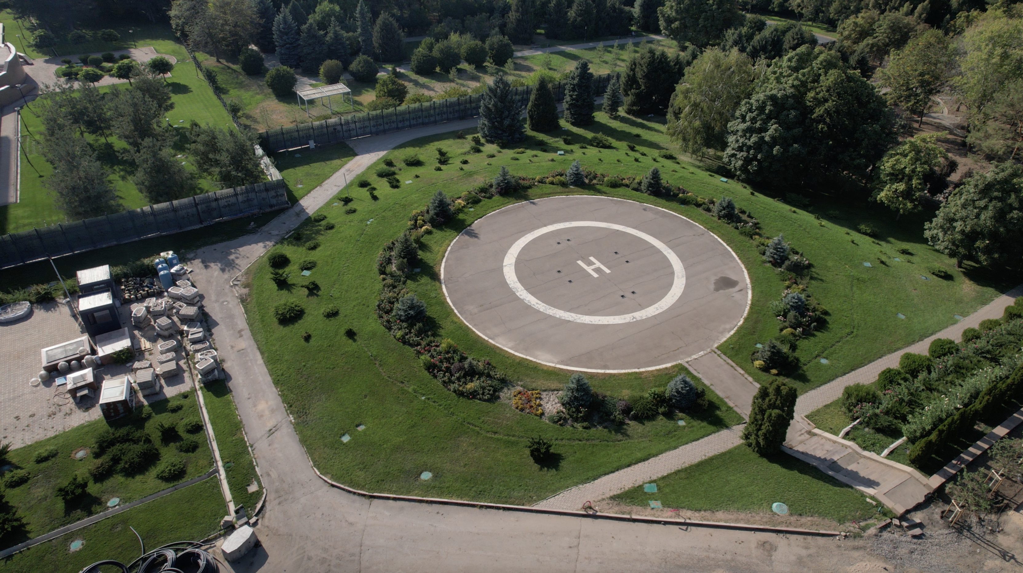 What has remained unchanged is the helipad on the west side of the future park, framed by a lawn.