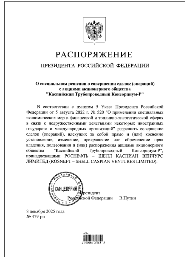 Meanwhile, Russia may be preparing changes to its own presence in the consortium. On December 8, President Vladimir Putin authorized Rosneft-Shell Caspian Ventures Limited to conduct transactions involving its 7.5% stake.