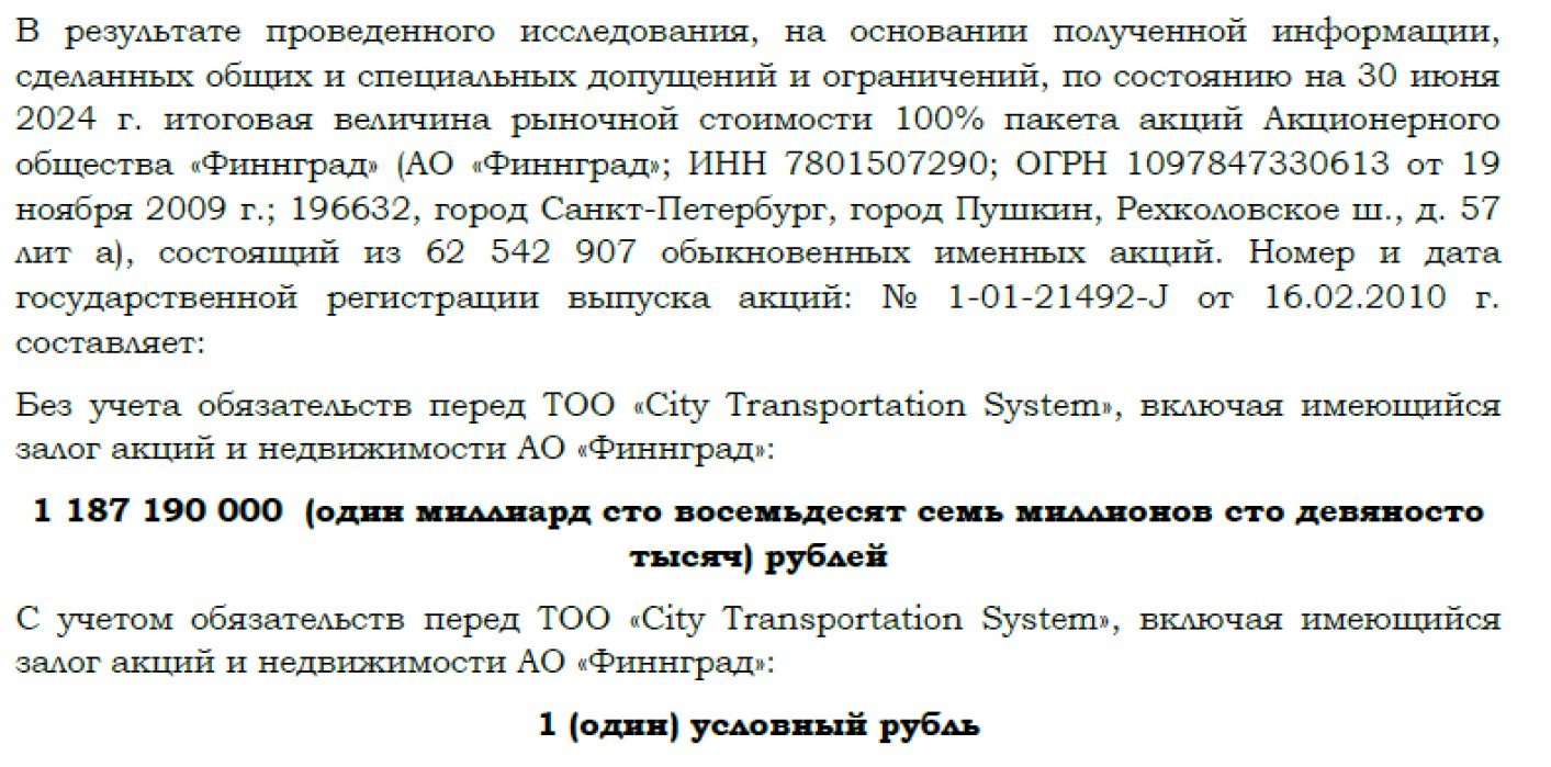 So why is the asking price so high? The value lies not in the SAT Investment itself, but in its collateral — assets belonging to the Russian company Finngrad JSC.