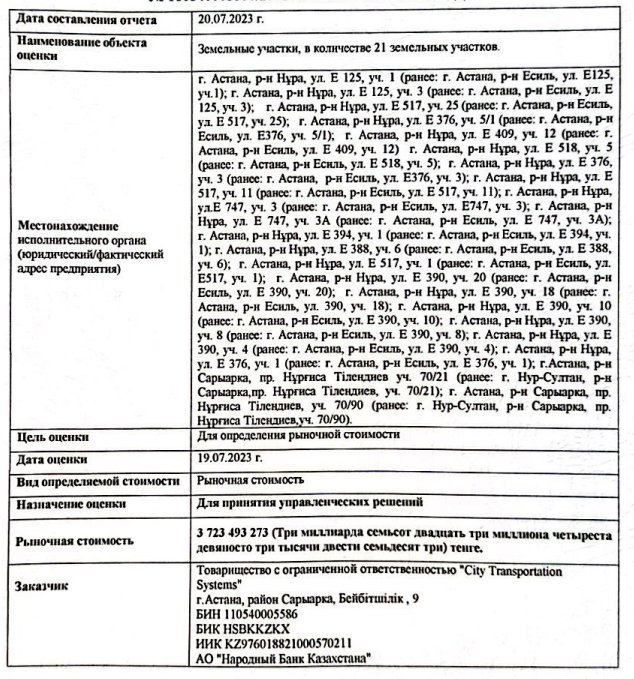- 21 land plots in Astana — 3.7 billion tenge