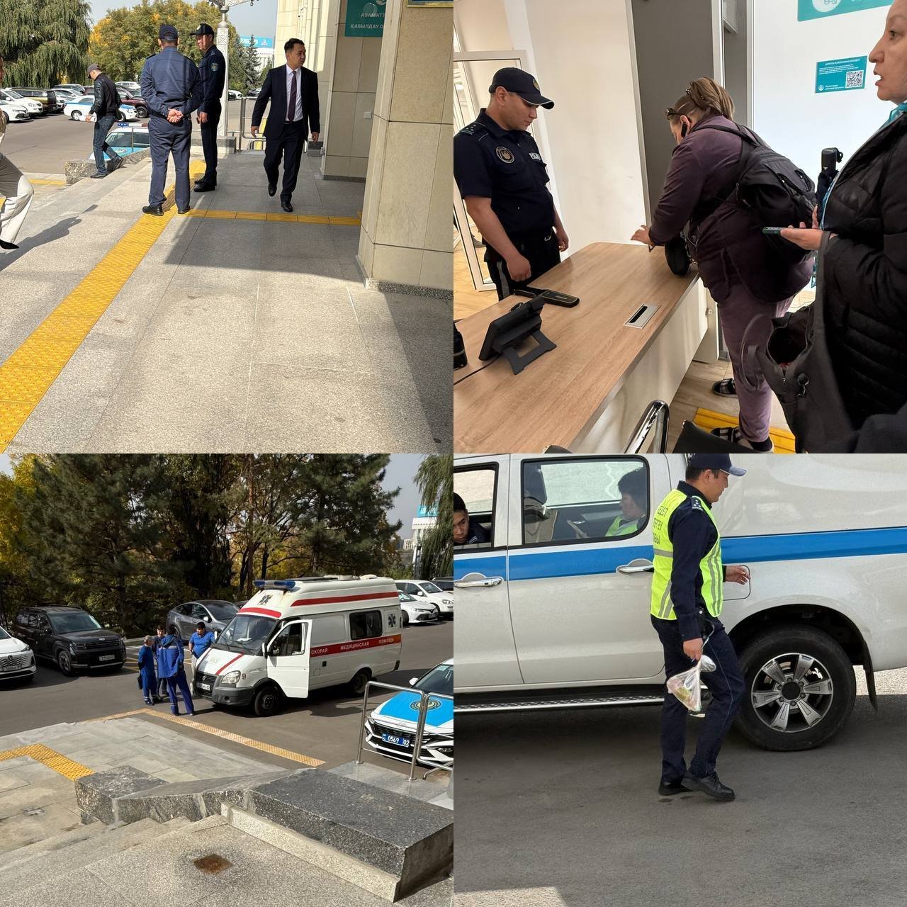 According to witnesses, emergency services and several police cars were already stationed outside the akim's office when journalists arrived. Inside the building, staff and visitors were asked to surrender lighters and matches, while a strong smell of gasoline lingered in the air.